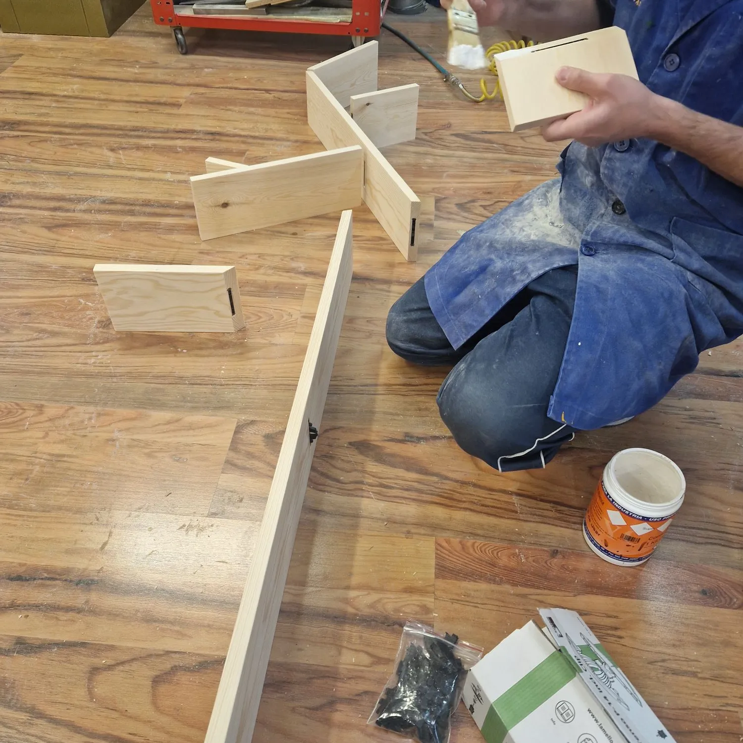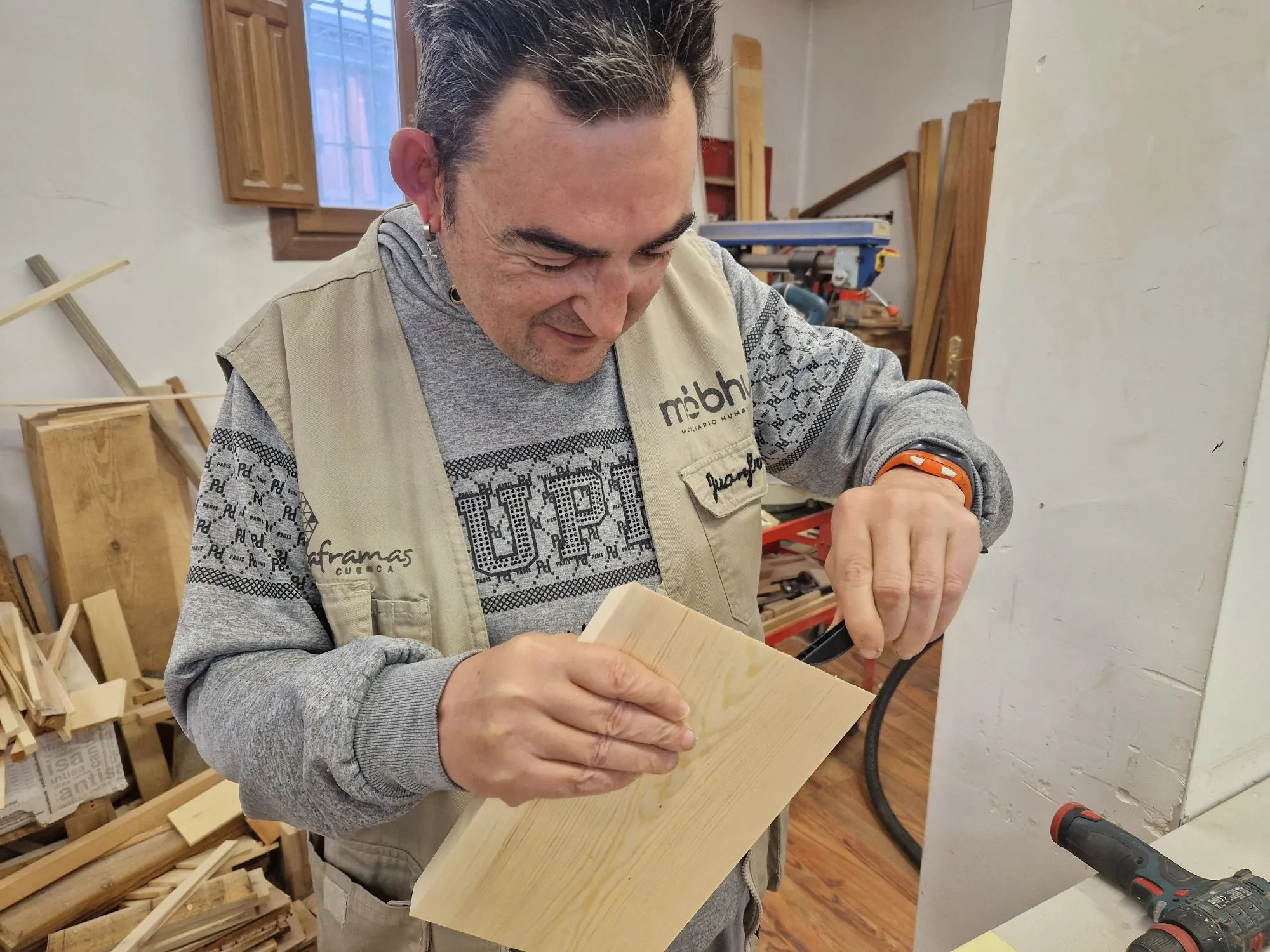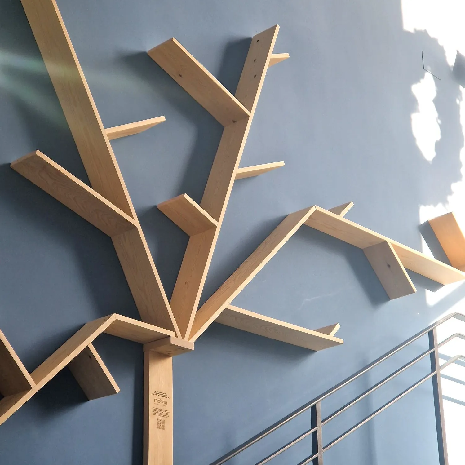 Ana Rosa, Decana de la Facultad, nos contactó para crear una estantería creativa en la escalera principal. Este elemento nos pareció que iba plenamente en sintonía con la energía de la Facultad; además de representar un elemento muy representativo para la educación; los libros, el conocimiento. Fue un reto realizar un trabajo de estas características, fabricado de manera artesanal en el centro ocupacional de Aframas (Cuenca); y con madera certificada procedente también de los bosques de la provincia.