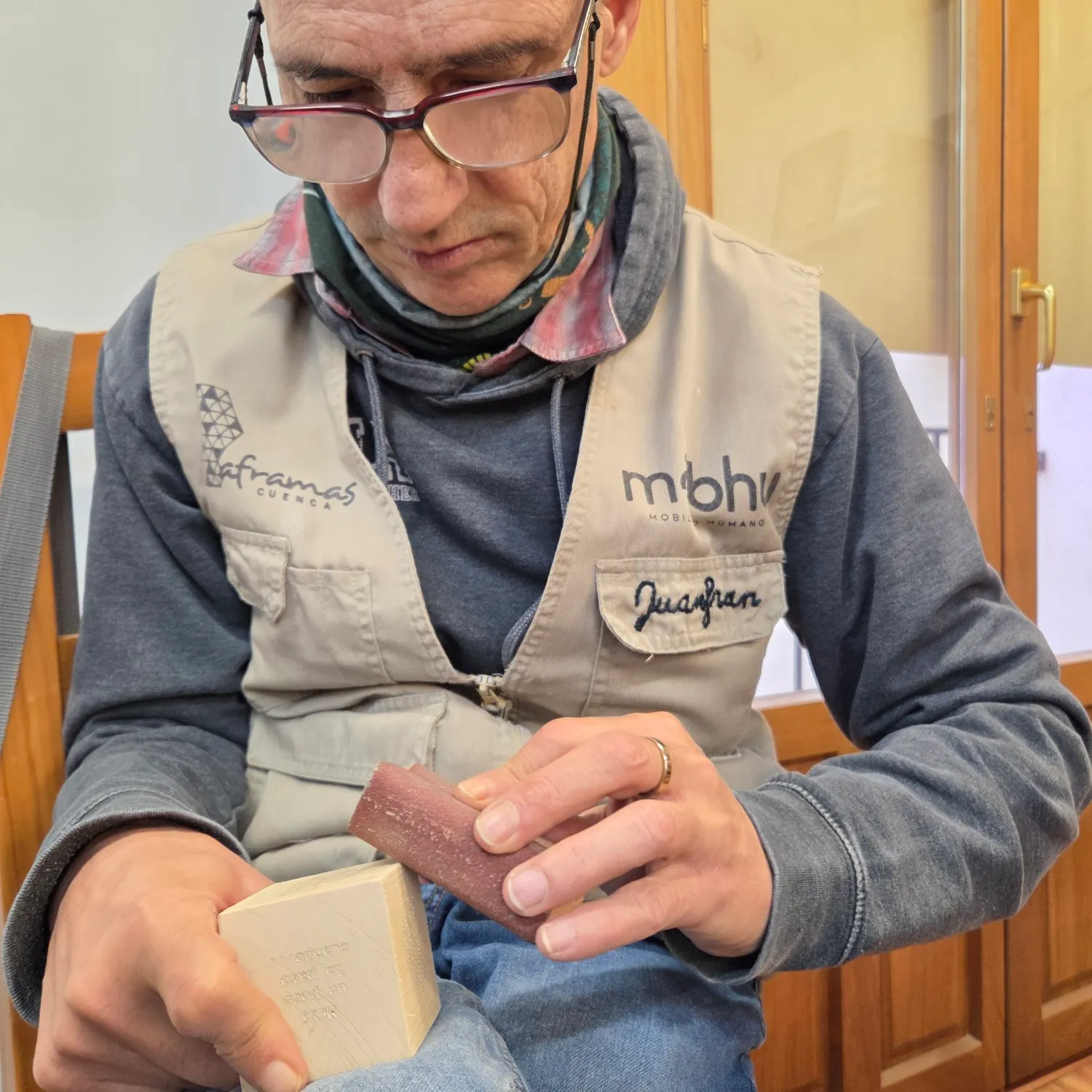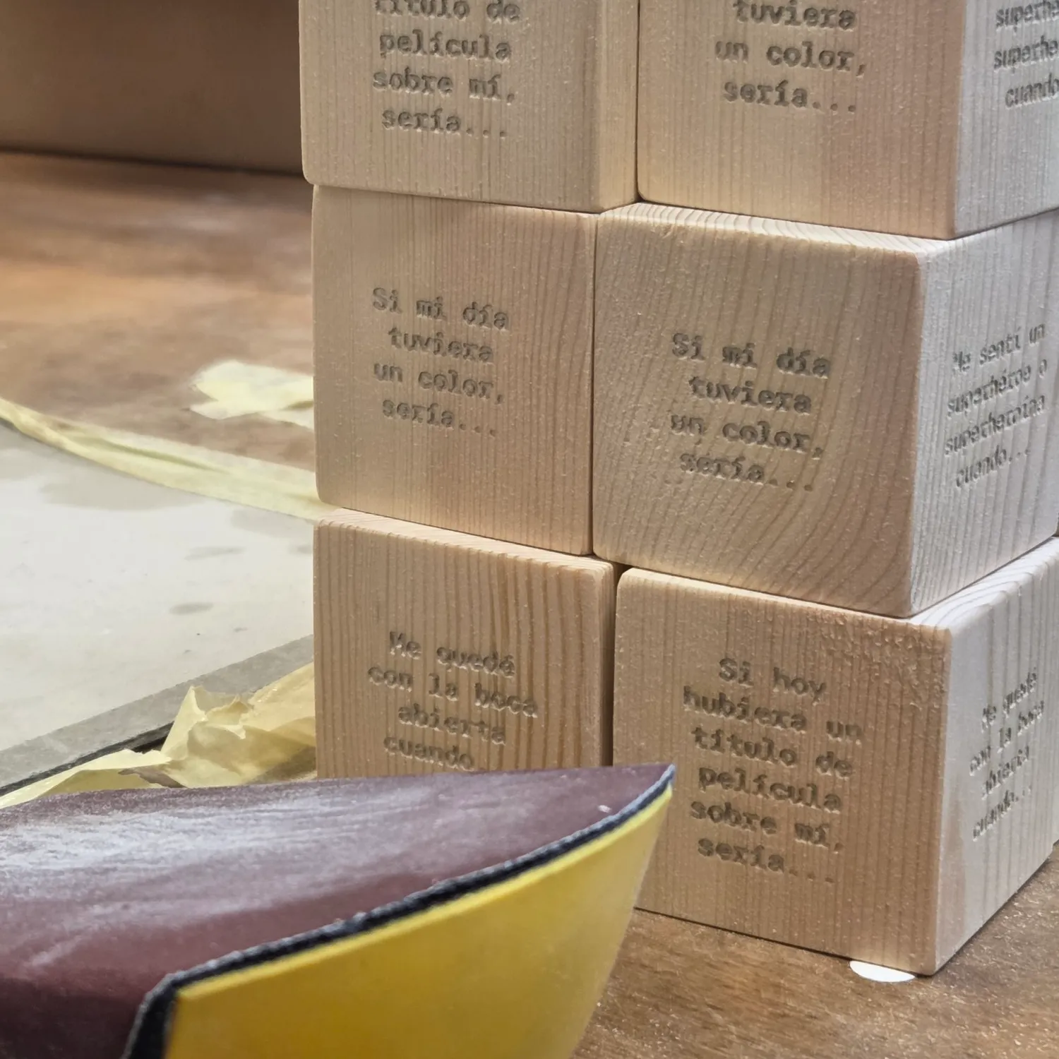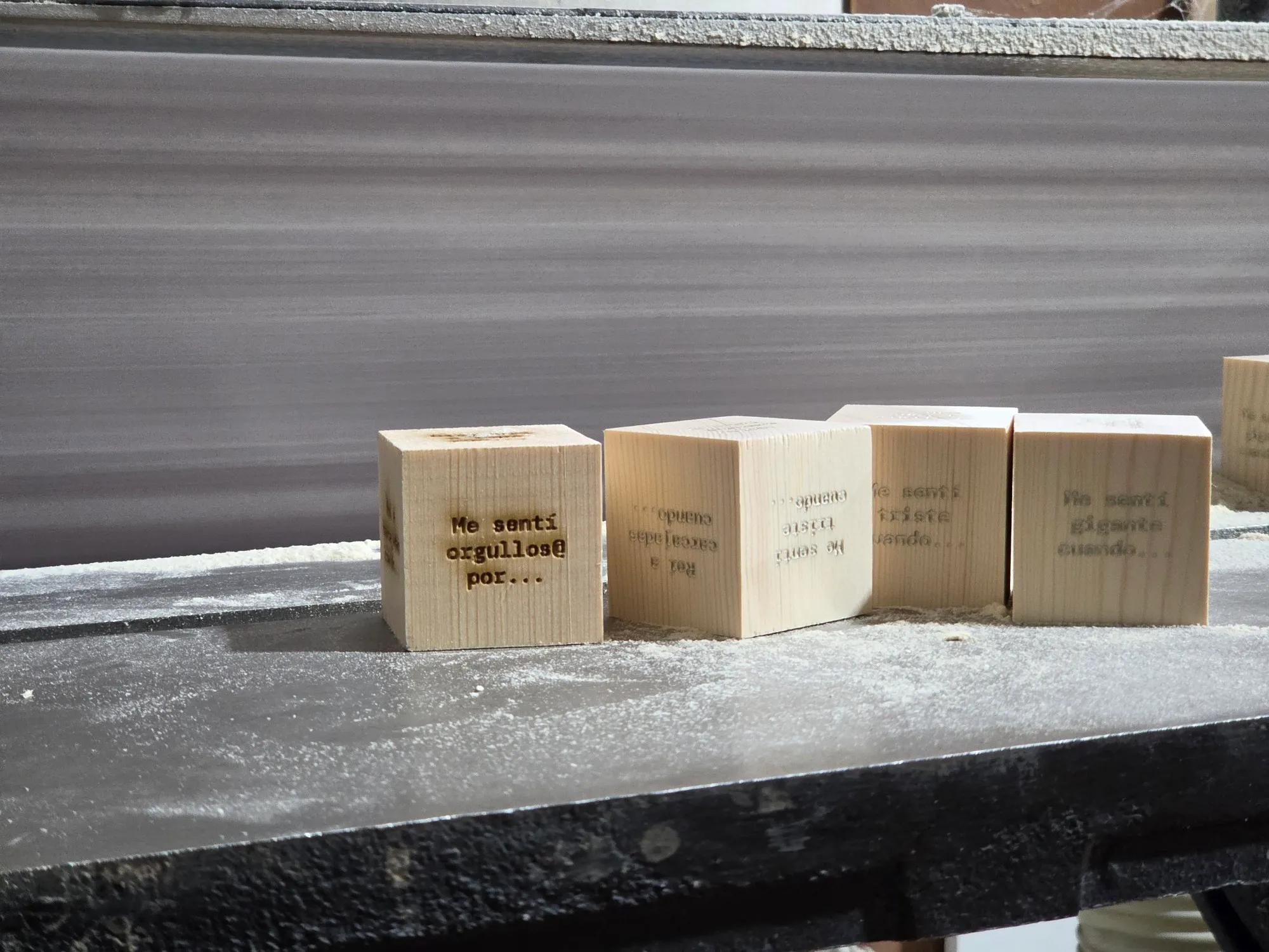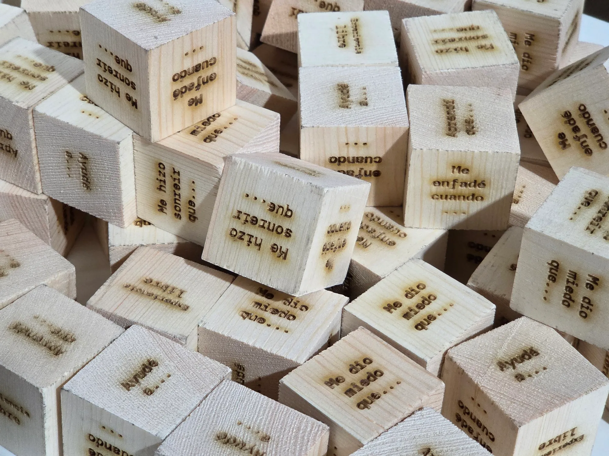 Gracias al equipo de carpintería de la asociación Aframas, dimos forma a los 3 dados de cada juego en tiempo récord, con sus 18 frases listas para iniciar una conversación amable con familia o amig@s. Me hizo sonreír que... Aprendí que... Ayudé a.... Me enfadé cuando... Me dio miedo que... Disfruté a tope con... Metí un poco la pata cuando... Reí a carcajadas cuando...