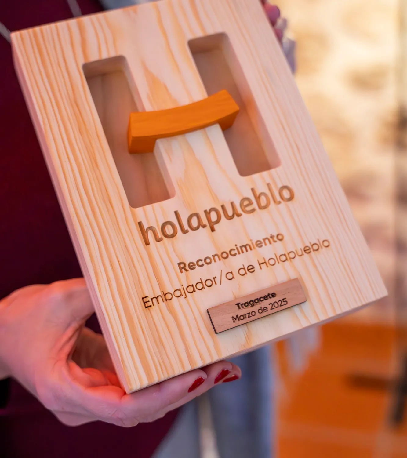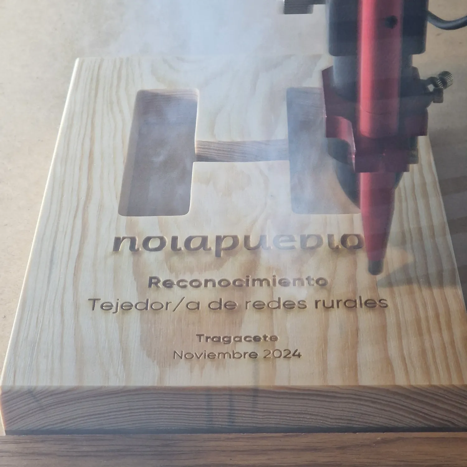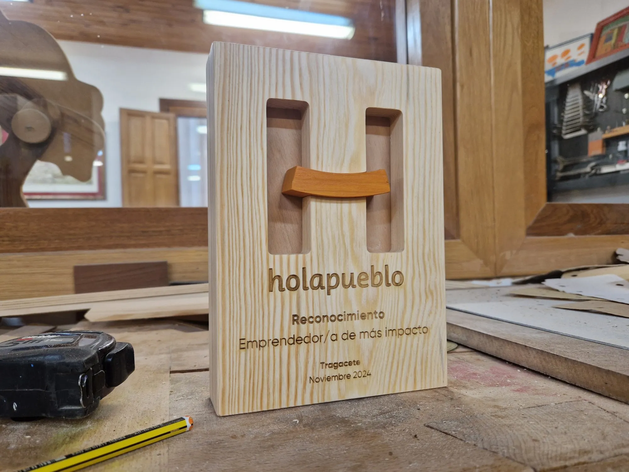 El 21 de marzo celebraron su primer encuentro presencial, precisamente en el cercano Tragacete, un pueblo de la serranía de Cuenca que ha apostado firmemente por la repoblación. El equipo de Alma Natura pensó en nosotr@s para diseñar y fabricar los reconocimientos que se iban a entregar. Allí, conocimos (y abrazamos) a Elena, a Bea, a Conce… quienes, además, nos invitaron a compartir lo que hacemos en Mobhu; y qué especial fue hacerlo en un entorno especialmente afín y cercano. Los bonitos reconocimientos fueron fabricados entre los centros ocupacionales de Aspadec y Aframas, combinando madera de pino laricio conquense con madera de cedro rojo.
