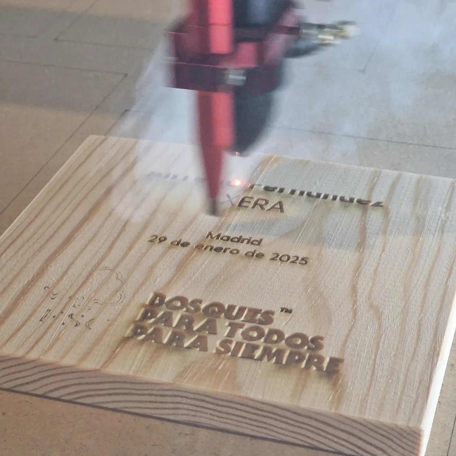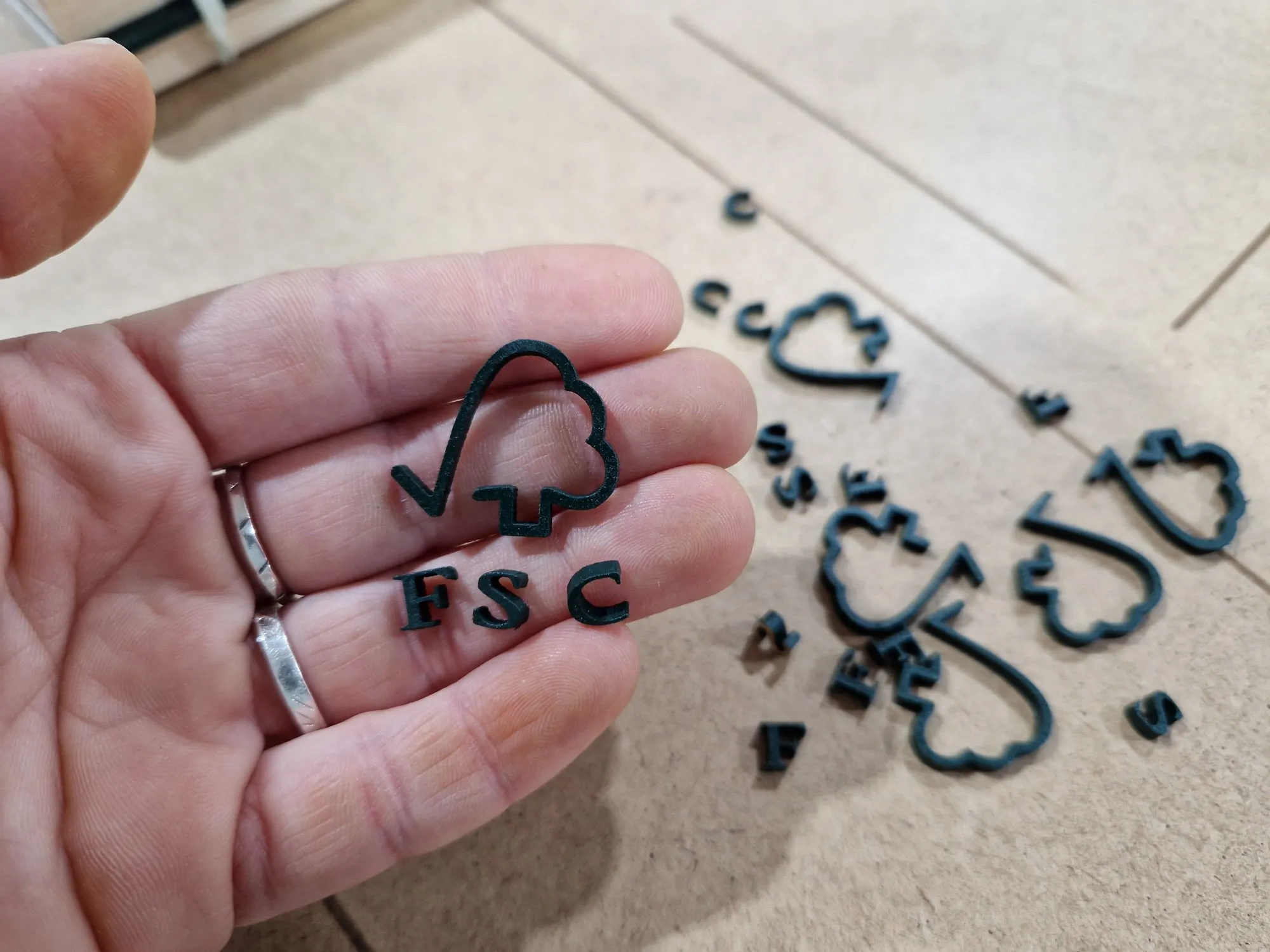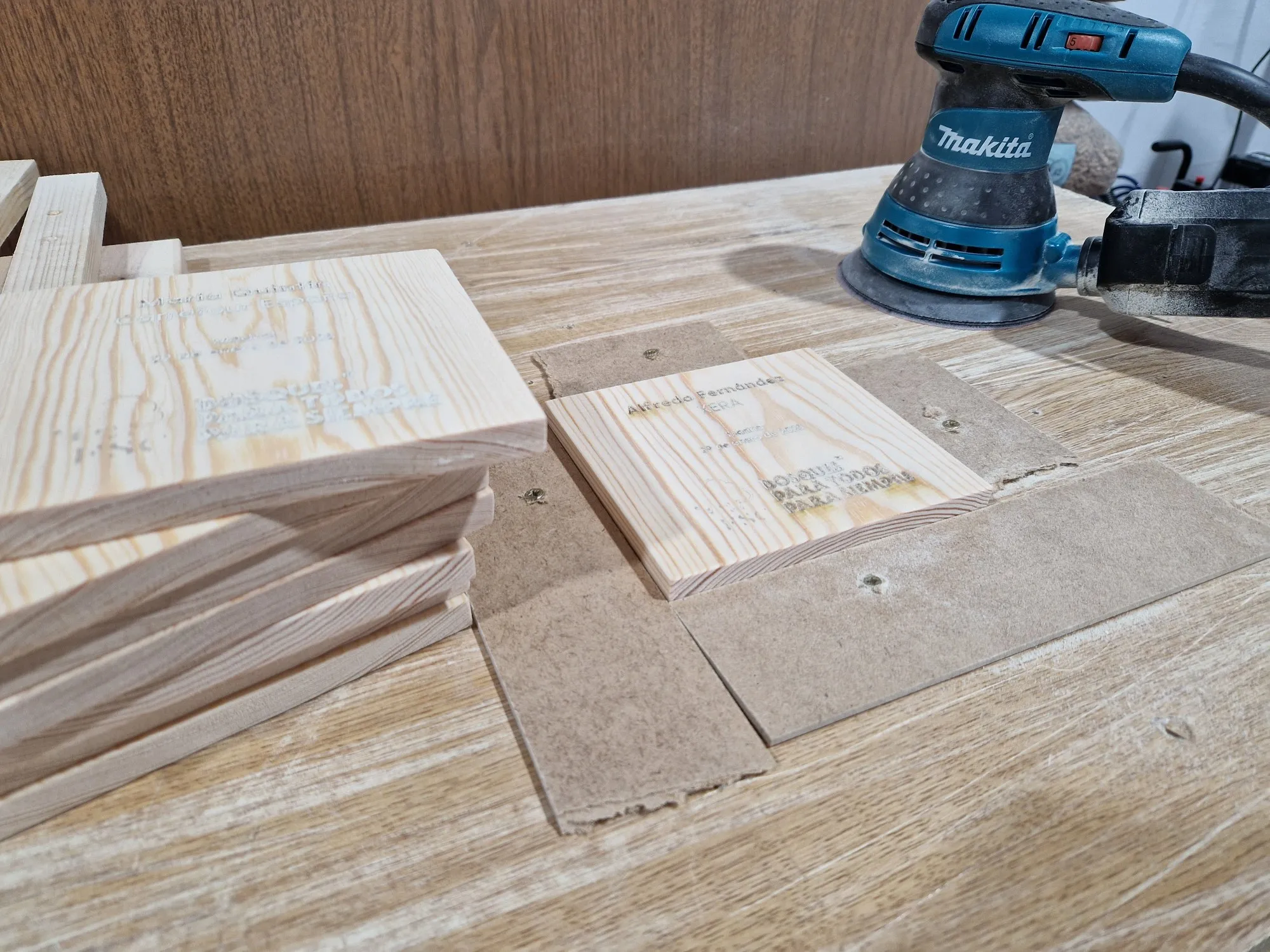 Alejandro, responsable de Comunicación de FSC España, se puso en contacto con nosotr@s para colaborar en el diseño y fabricación de unos reconocimientos en el marco de la campaña "Presume de Bosques". La entrega se realizaría en Madrid, en el evento “Sostenibilidad: del consumidor al bosque”. En esta ocasión, fabricamos las piezas principales en el centro ocupacional Aspadec (Cuenca); con madera de pino laricio procedente de los bosques de la provincia. La capa intermedia, chapa de madera de 4 mm, la lacamos del color corporativo de FSC, al igual que las letras y el icono principal. Combinamos estos detalles con el grabado láser de CO2 y, ¡ta-chán!, el resultado gustó muchísimo. Tenemos que decir que este proyecto nos hizo especial ilusión, pues en Mobhu precisamente estamos comprometid@s con el uso de madera certificada FSC para la fabricación de todos nuestros productos. Un placer enorme trabajar de su mano en esta ocasión :).